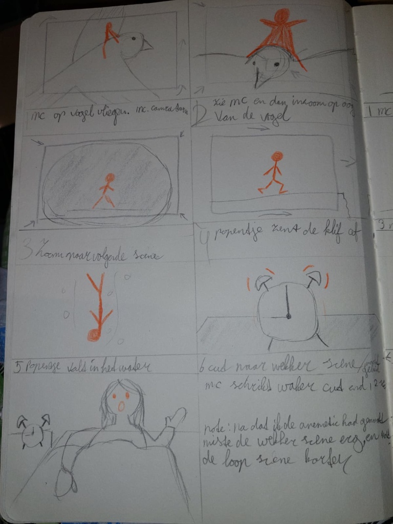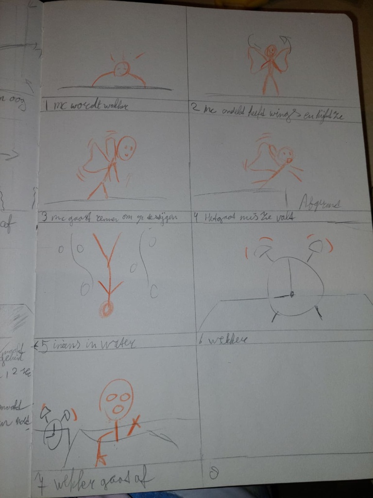 ik had eerst een idee maar die versie is compleet geschrapt (kijk 2de video). ook wou ik eigenlijk een menselijk elfje tekenen maar dit is ook een stick figuur geworden. Dit kwam omdat het in totaal 144 tekeningen/frames zijn wat super veel werk is op zichzelf.